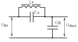 Фильтр(контур) настраивается на частоту первой гармоники и создается большле сопротивление Z к для ее прохождения. Кондесатор Cф сглаживает гармоники высших порядков.
