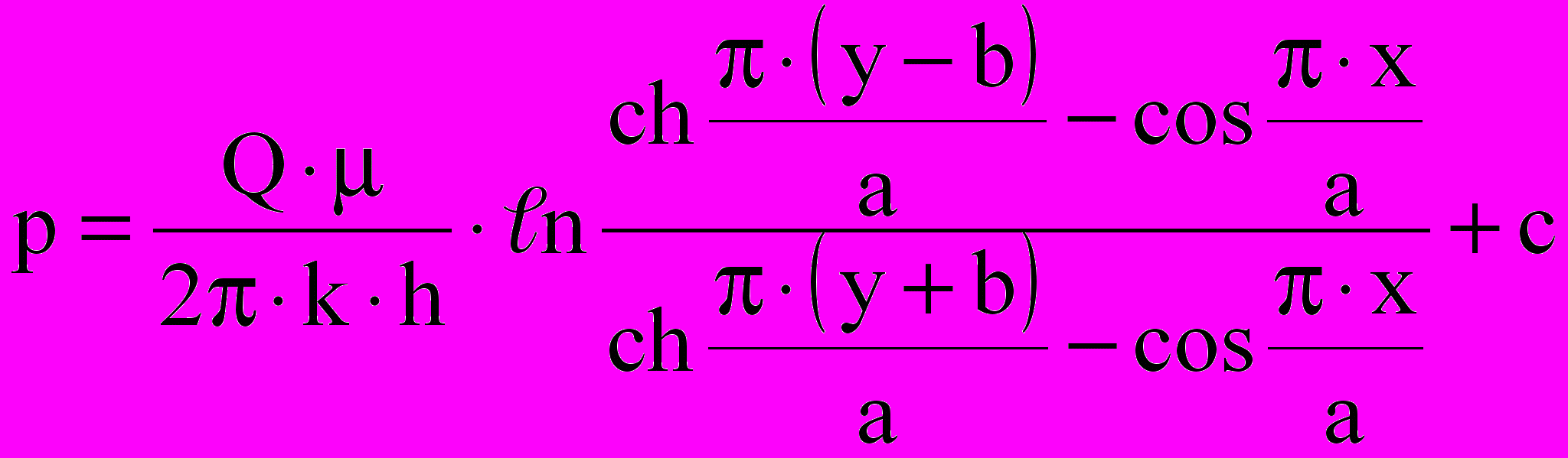 , (1)где Q – суммарный дебит скважины; а – половина расстояния между скважинами; b – расстояние до контура питания; k, h, – соответственно проницаемость, мощность пласта, вязкость жидкости; c – постоянная интегрирования.