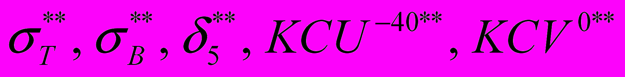 | Предел текучести т, МПа | Временное сопротивление разрыву в, МПа | Относительное удлинение 5, % | Ударная вязкость KCU-40, Дж/см2 | Ударная вязкость KCV0, Дж/см2 |