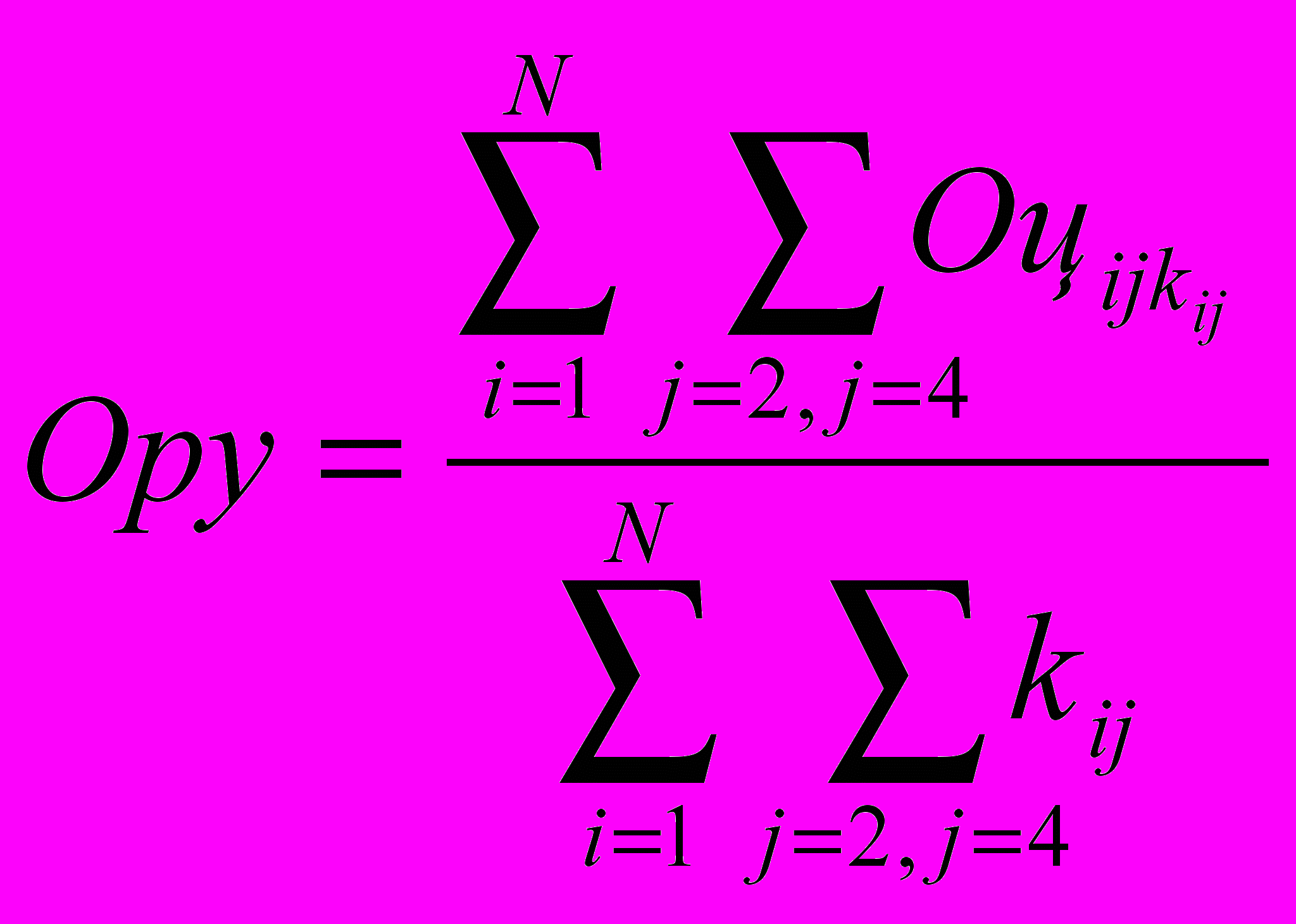– оценка выполнения соответствующей цели в отношении i-го объекта; j – индекс, обозначающий вид цели в отношении объекта (здесь и далее: j=1 – цель-показатель, направленная на поддержание функционирования объекта интегративной системы менеджмента, j=2 – цель-мероприятие, направленная на поддержание функционирования объекта; j=3 – цель-показатель, направленная на улучшение функционирования объекта; j=4 – цель-мероприятие, направленная на улучшение функционирования объекта);