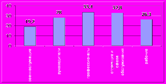 Рис. 4. Среднее время на домашний труд в зависимости от профессионального статусы, час/нед, РМЭЗ, 2006 г.
