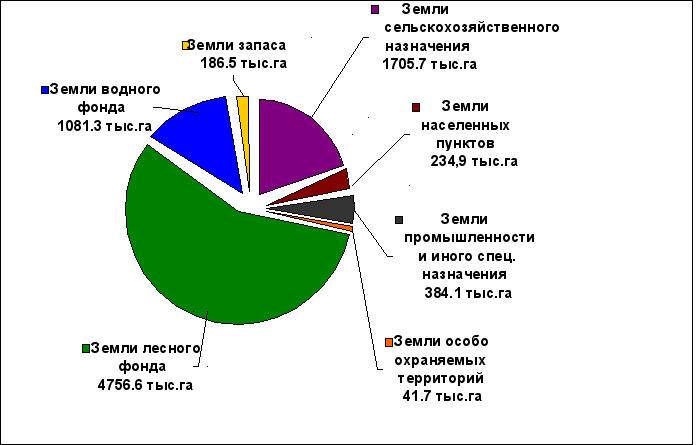 Глава 1.1. РАСПРЕДЕЛЕНИЕ ЗЕМЕЛЬНОГО ФОНДА ЛЕНИНГРАДСКОЙ ОБЛАСТИ ПО КАТЕГОРИЯМ ЗЕМЕЛЬ