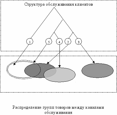 Формирование заказов в фирме «Глобус ТВ» производится различными каналами обслуживания, работающими с определенными группами товаров, что видно из рисунка 5. В соответствии с выбранным критерием – количество обращений клиентов к различным каналам обслуживания в приведенной структуре выделяется пять таких каналов.