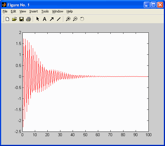 По критерию Сильвестра решение не является положительно-определенной матрицей, следовательно, система не является асимптотически устойчивой. График свободного движения системы при начальных условиях