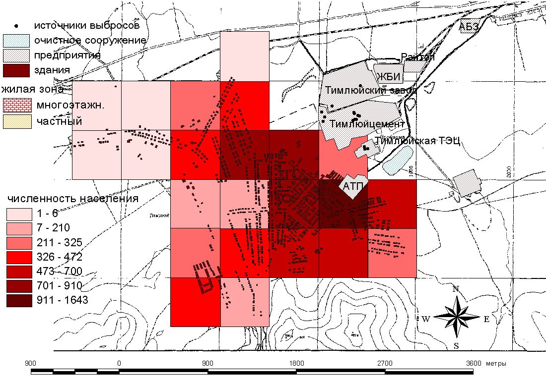 ООО «Тимлюйский цементный завод» и Тимлюйская ТЭЦ расположены в пос. Каменск, где совместно с ОАО «Тимлюйский завод» образуют Тимлюйскую промплощадку (рис. 1). Все указанные предприятия имеют ведомственные проекты нормативов ПДВ загрязняющих веществ в атмосферу, но только выбросы пыли неорганической: 70-20% SiO2 ООО «Тимлюйский цементный завод» создают превышение расчетных концентраций в селитебной зоне до 8,46 ПДК (Проект нормативов…, 2006). В пос. Каменск численность населения составляет 7744 человек, в том числе 1611 детского населения.