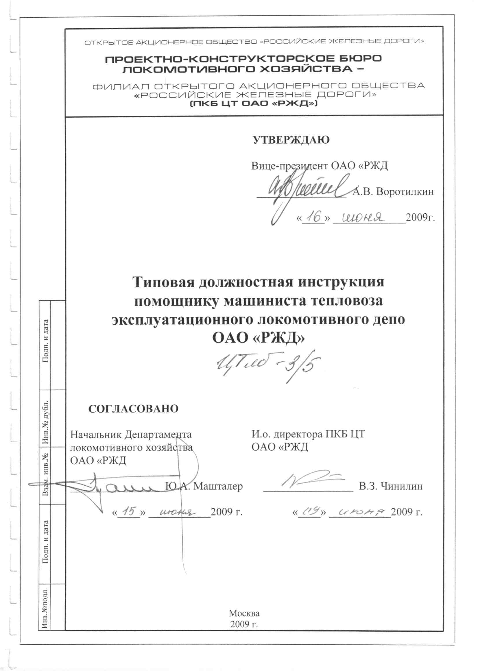 2.3. Назначение (освобождение) на должность помощника машиниста тепловоза производится начальником эксплуатационного локомотивного депо по представлению машиниста-инструктора и согласованию с заместителем начальника локомотивного депо по эксплуатации.