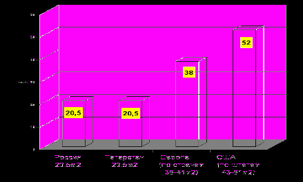 в Татарстане обеспеченность 20,5 кв. метра (предварительный результат по итогам 2005 года), ввод жилья – 0,43-0,47 кв. метра.