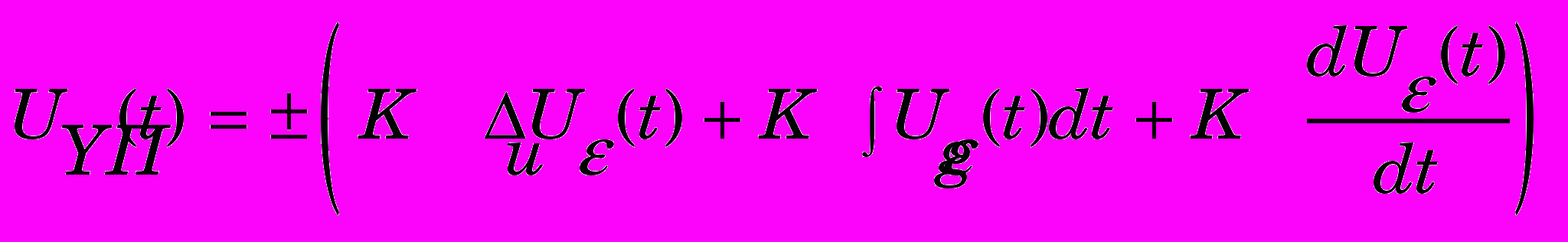 . (12)Здесь КП, КU и Кg – параметры настройки и каналов. Входным сигналом на каждый канал ПИД – регулятора (пропорциональный П, интегральный И, дифференциальный Д) является сигнал рассогласования.