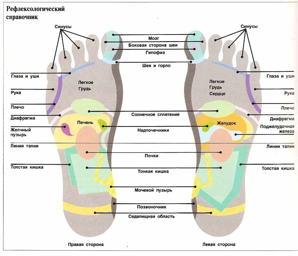 Схема. Участки стопы, связанные с работой внутренних органов