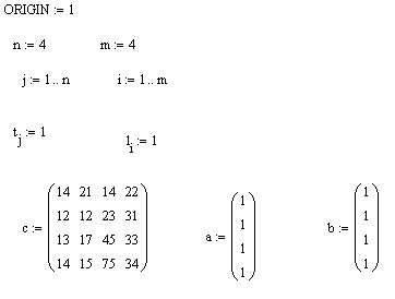 1) Специальной переменной ORIGIN присваивают значение 1. Значением ORIGIN является номер первого элемента строки или столбца в матрице. По умолчанию ORIGIN=0.