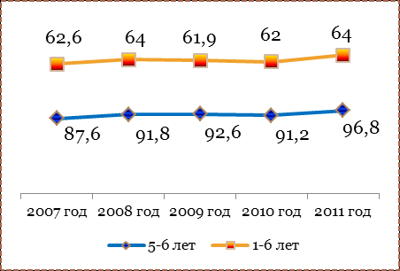 - стабильный рост числа детей в возрасте 1-6 лет (с 18 989 человек в 2009 году до 20 142 в 2011) сохраняет проблему дефицита мест в детских садах;