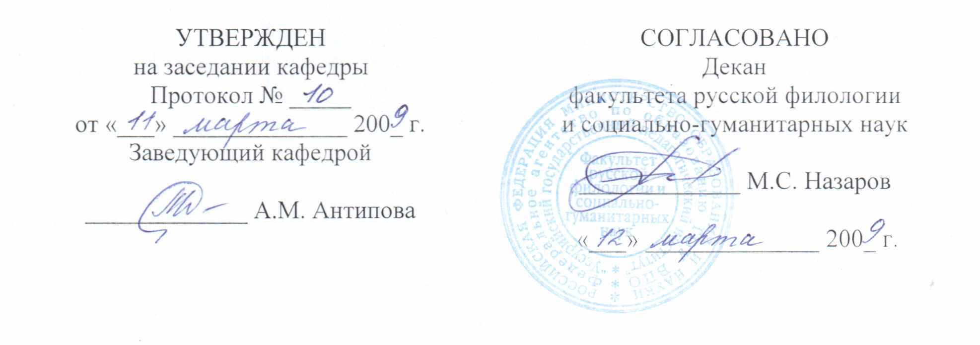 - Выписка из ГОС ВПО (для дисциплин Федерального компонента) ………….