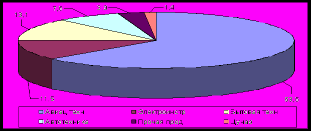 Доли основных групп изделий в общем объеме производства