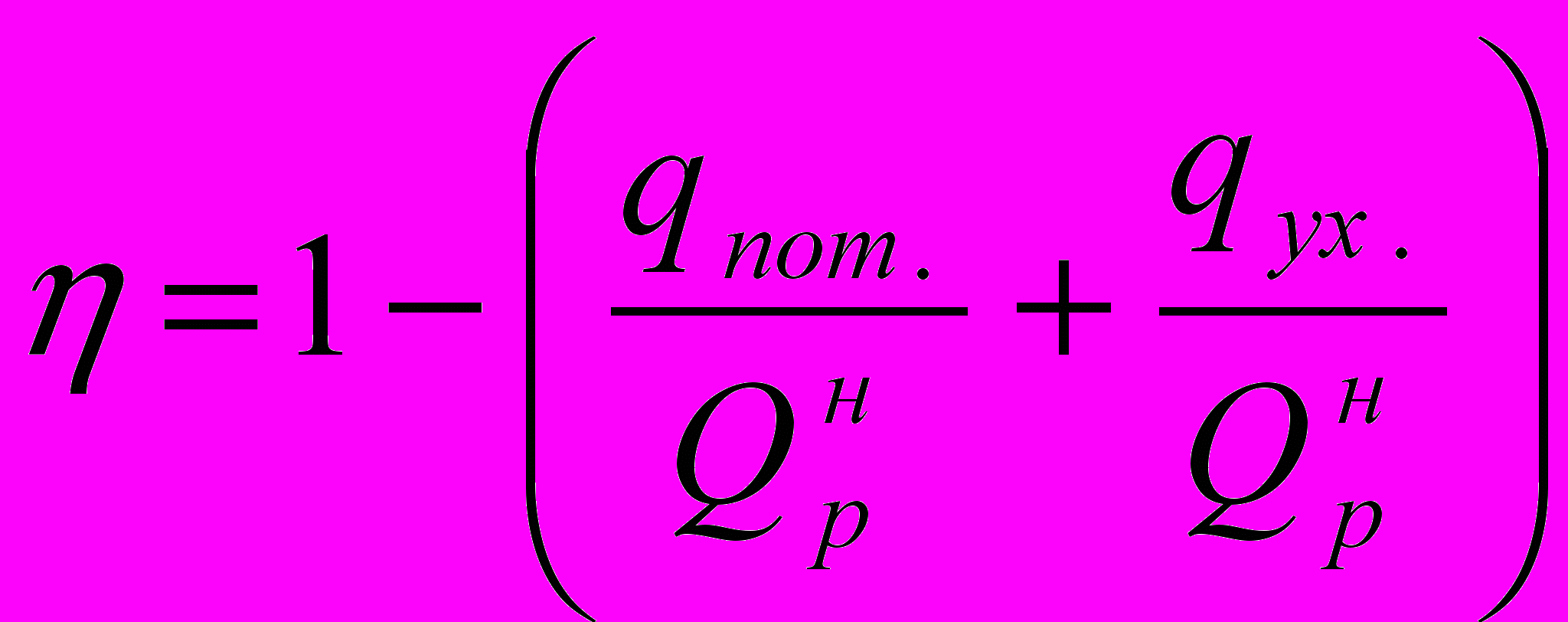 - потери тепла в окружающую среду, в долях от низшей теплоты сгорания топлива;
