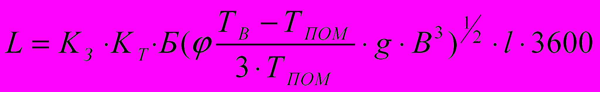 Объемный расход воздуха, отсасываемого от горячих ванн, может быть определен по формуле: