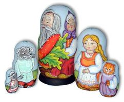 атрёшкаВ 90-х гг 19 в. в Московскую игрушечную мастерскую "Детское воспитание" А. Мамонтова привезла из Японии фигурку добродушного лысого старика мудреца Фукурума. Она представляла собой несколько вложенных одна в другую фигурок.