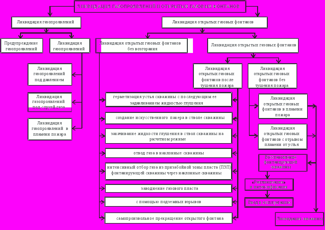 1. Предложена новая классификация методов ликвидации открытых газовых фонтанов и пожаров, включающая ликвидацию открытых газовых фонтанов как с предварительным тушением пламени пожара на устье фонтанирующих газовых и газоконденсатных скважин, так и без тушения. Данная классификация в сочетании с предложенной нормативной базой руководящих и учебно-методических документов позволяет осуществлять оперативный поиск оптимальной технологии для конкретных условий фонтанирования газовых и газоконденсатных скважин.