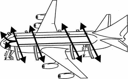 В случае заклинивания дверей и люков производится вскрытие обшивки фюзеляжа в специально обозначенных местах;