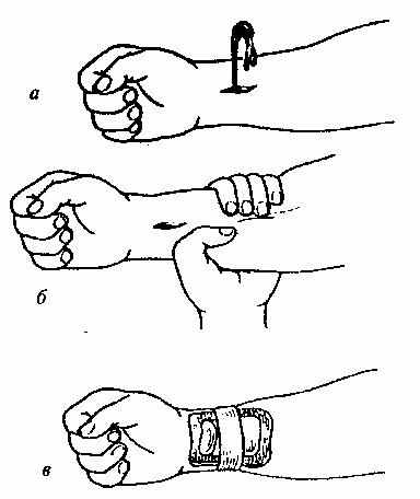 Рис. 10.3 . Пальцевое прижатие артерии при кровотечении из кисти и ран