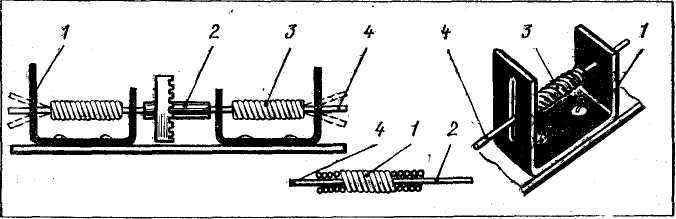 Упражнение 6. Изготовить рессоры для модели автомобиля. Пружины делают наборными из листов (полосок) или выполняют в виде пружины из проволоки. При изготовлении листовой рессоры коренной лист делают из пружинной стали 50С2 или 55С2, а остальные листы — из пластмассы, конструкционной листовой стали (можно использовать пришедшую в негодность рулетку или пружину от часового механизма) или из других материалов.