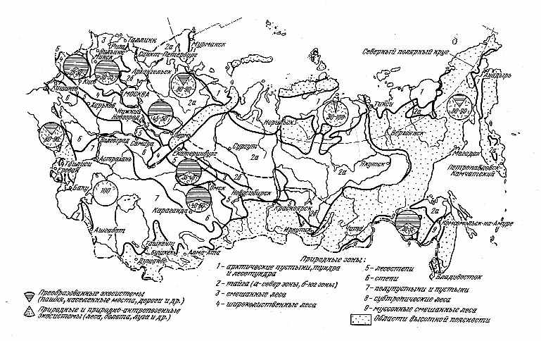 В связи со сказанным следует вести речь о сохранении в той или иной степени неизменном виде подавляющей части пространства планеты — не отдельных процентов территории суши, а в зависимости от степени преобразованности экосистем многих десятков процентов. Эта идеология была отражена на картосхемах изданных мною словарей (рис. 5.1).