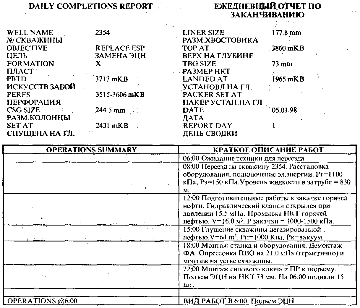 10. The actual depth at which the pump is installed, the time of installation, the static fluid level in the well and the readings of the gauges should all be indicated in the daily report.