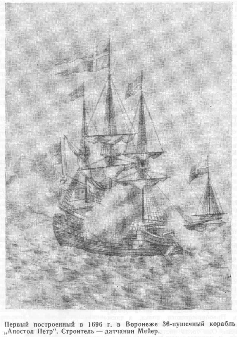 Опыт русских людей в постройке кораблей дополнялся опытом, заимствованным у иностранных кораблестроителей, руководивших постройкой кораблей на Воронежских верфях. Десятки русских людей, изучавших