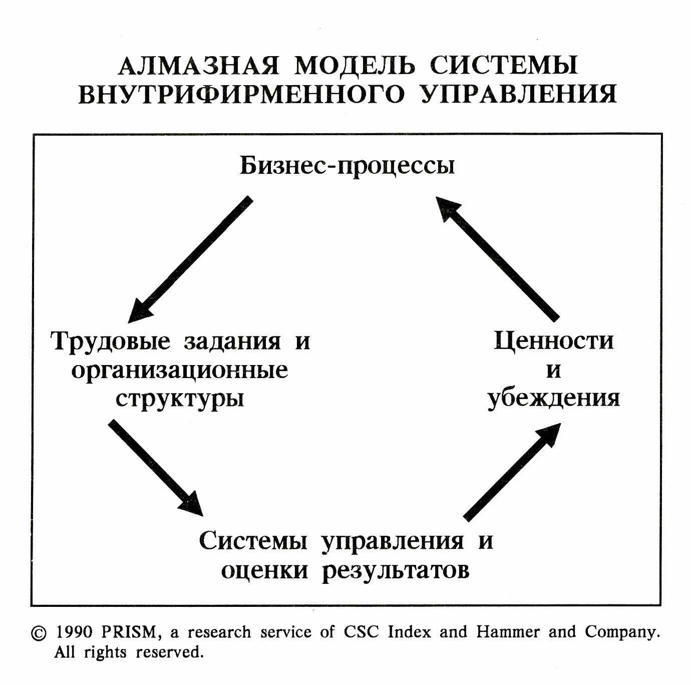 Алмазная модель системы внутрифирменного управления - связанные друг с другом четыре элемента модели: люди, трудовые задания, менеджеры и ценности. (рекомендуется, если компания проводит реинжениринг)