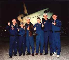 | Экипаж после приземления | Космонавт РКК "Энергия" им. С.П. Королева С. Крикалев |