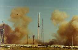 С середины 1960 г. США сконцентрировали усилия на программе "Аполлон", ставившей целью посылку человека на Луну. Она успешно осуществилась в июле 1969г., когда Нейл Армстронг и Эдвин Олдрин покинули "Орел", лунный модуль "Аполлона-11", и сделали исторический "первый небольшой шаг" по лунной поверхности. После сбора образцов лунных пород, оставив записывающую аппаратуру, два астронавта вернулись в лунный модуль и присоеденились к третьему члену экспедиции- Майклу Коллинзу, который летал вокруг Луны в коммандном отсеке.