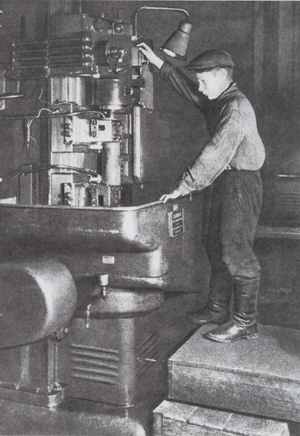 2) На (2) фотографии изображен мальчик (ему лет 12 -14), он небольшого росточка, а стоит на 2-х ящиках у сложного станка. Он работает на заводе, который делает снаряды для фронта. Он заменил своего отца или брата, который ушел на фронт воевать с немцами. А ящики ему подставили, так как он не достает до станка. Он очень хотел бы пойти на фронт сражаться с немцами, но ему мало лет, его не возьмут. А на заводах и фабриках некому было работать, и дети помогали взрослым.