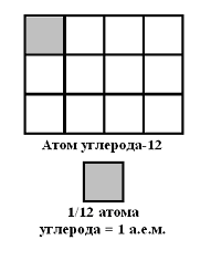 6.Применение простейших средств для формирования абстрактных понятий. Понятия атомной массы, количества вещества усваиваются учащимися с трудом. Приведенный рисунок, вырезанный из бумаги, поможет ученику представить единицу измерения массы атомов и молекул.