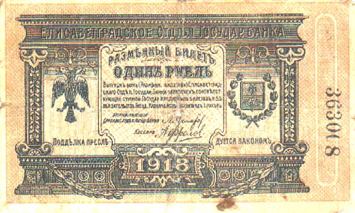 Під час громадянської війни та в перші роки Радянської влади у Єлисаветграді (згодом Зінов'євську, Кіровограді) виходило ще немало місцевих "грошових знаків", які згодом, після появи стійкої національної валюти, стали предметом і гордістю власників нумізматичних колекцій.