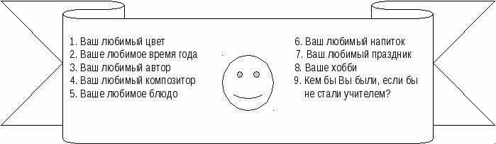 Пожарова Н.И. 1.голубой; 2.лето; 3.С.Шелдон; 4.П.И.Чайковский; 5.салат из фруктов; 6.кефир; 7.День учителя; 8.цветоводство на даче; 9.только учителем