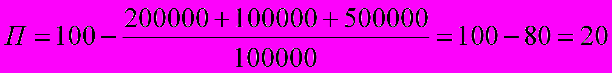 Зпост=500000; Зпер=100 000; Д=10 000 усл. натуральных единиц. Рассчитаем прибыль по формуле (1):