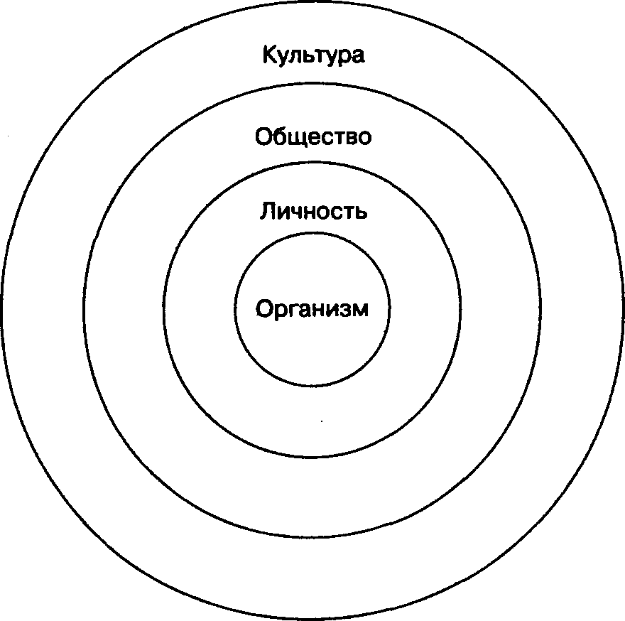 Всякая социальная система, в соответствии с теорией Т. Парсонса, складывается из четырех функциональных структур: организма, личности, общества и культуры (рис. 1.6).