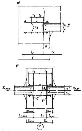 в продольных стенах лестничных клеток (черт.7, д) при опирании перекрытий на поперечные стены определяются по формулам:а) при сборном перекрытии