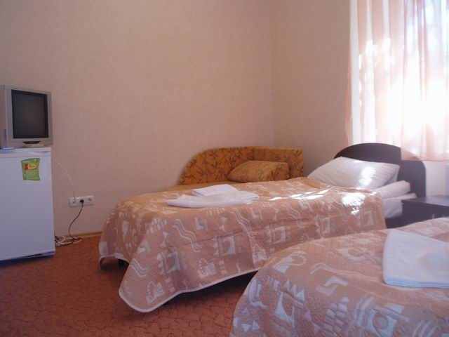 | На территории комплекса находится ресторан, детская комната, SPA-зона (бассейн, сауна, кабинет с гидромассажной ванной и прочим, солярий, массажный кабинет). 2-х и 3-х местные комфортабельные номера. Оснащение: - две полуторные кровати или одна двуспальная + раскладное кресло, - санузел с душевой кабиной, - холодильник, - телевизор (надеемся, никому не понадобится), - пол – ковровое покрытие | ||||||