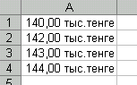 A) Выбрать команду Формат - Ячейки, на вкладке «Число» выбрать из списка категорию «Все форматы» и задать формат ###0,00 ” тыс.тенге”; B) Выбрать команду Формат - Ячейки, на вкладке «Число» выбрать из списка категорию «Все форматы», и задать формат ###, ## ” тыс.тенге”; C) Выбрать команду Формат - Ячейки, на вкладке «Число» выбрать из списка категорию «Денежный»; D) Написать в строке формул тыс.тенге; E) Выбрать команду Формат - Ячейки, на вкладке «Число» выбрать из списка категорию «Все форматы» и задать формат ###0 ” тыс.тенге”.