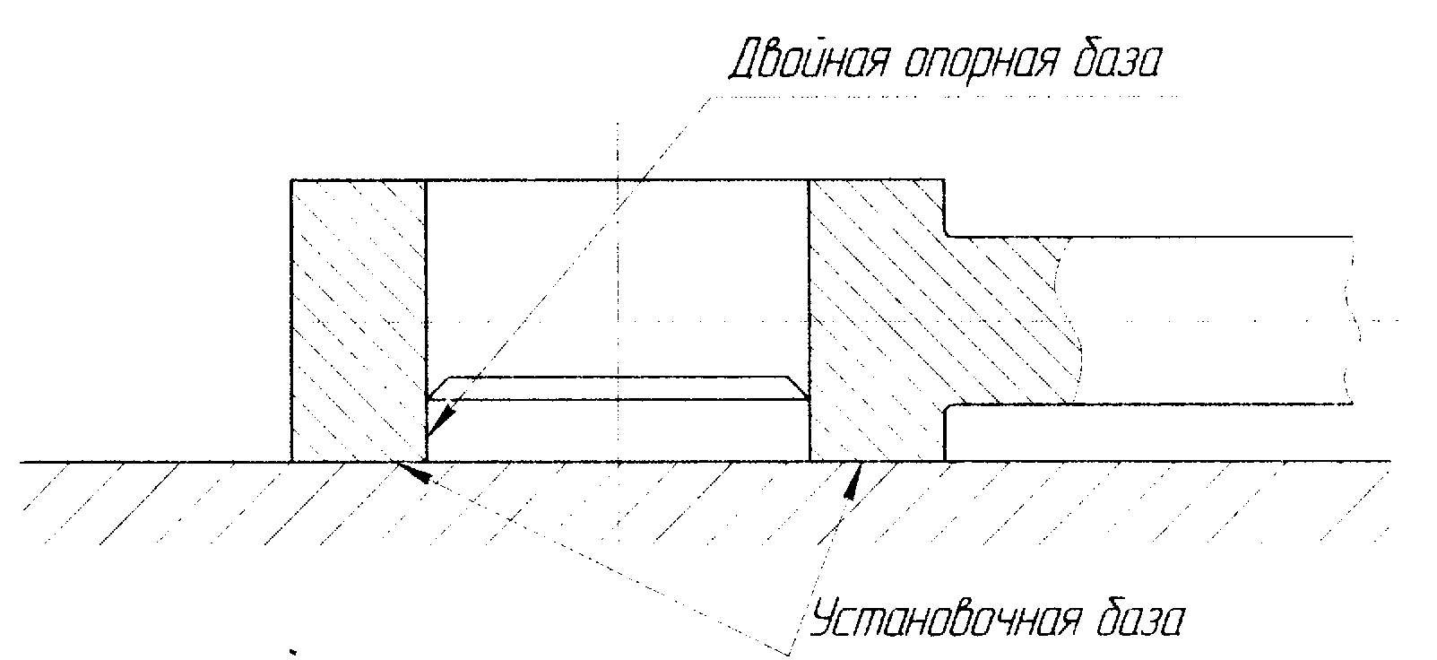 Двойная опорная база - база, лишающая заготовку или изделие двух степеней свободы - перемещений вдоль двух координатных осей.