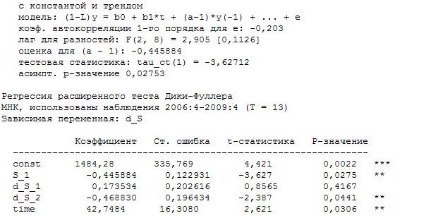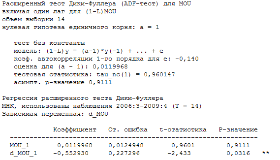 Для установления стационарности временных рядов в данной работе мы будем использовать расширенный тест Дики-Фулера, далее ADF-тест. Для эконометрических расчетов мы воспользуемся приложением “Gretl”.