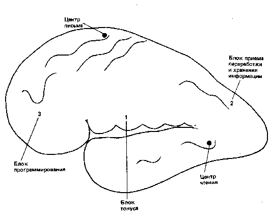 Современная нейропсихология выделяет три основных функциональных блока, три основных аппарата мозга, участие которых необходимо для любого вида психической деятельности человека, в том числе и чтения (рис. 3).