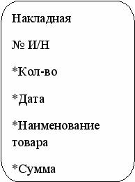 Поэтому возникает понятие "Список товаров в накладной". Сущности "Накладная" и "Товар" связаны друг с другом отношением типа много-ко-многим. Такая связь должна быть разделена на две связи типа один-ко-многим. Для этого требуется дополнительная сущность. Этой сущностью и будет сущность "Список товаров в накладной". Атрибуты "Количество товара в накладной" и "Цена товара в накладной" являются атрибутами сущности "Список товаров в накладной".