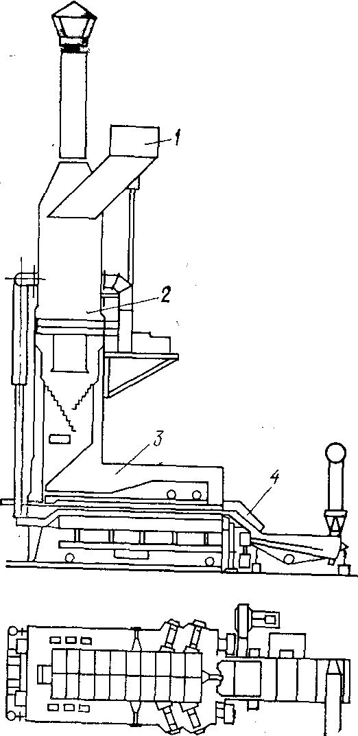 I—загрузка; 2 — шахта для подогрева; 3 — вибростол; 4 — выгрузка