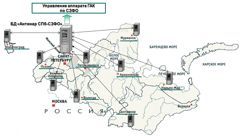 На основе программно-технических средств АИС «Антинар СПб» имеется возможность организовать функционирование единой базы данных по вопросам наркоситуации в субъектах СЗФО в интересах Управления аппарата ГАК по СЗФО. С этой целью необходимо: