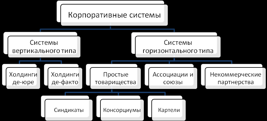 Представляется наиболее правильным для обозначения различных форм интеграции, кооперирования, экономической взаимосвязи и взаимозависимости, как правило, коммерческих организаций в российской предпринимательской практике использовать понятие «система», а для отличия этих форм объединений от других коллективных образований именовать их корпоративными системами, поскольку целью их создания является осуществление деятельности, направленной на систематическое извлечение прибыли.