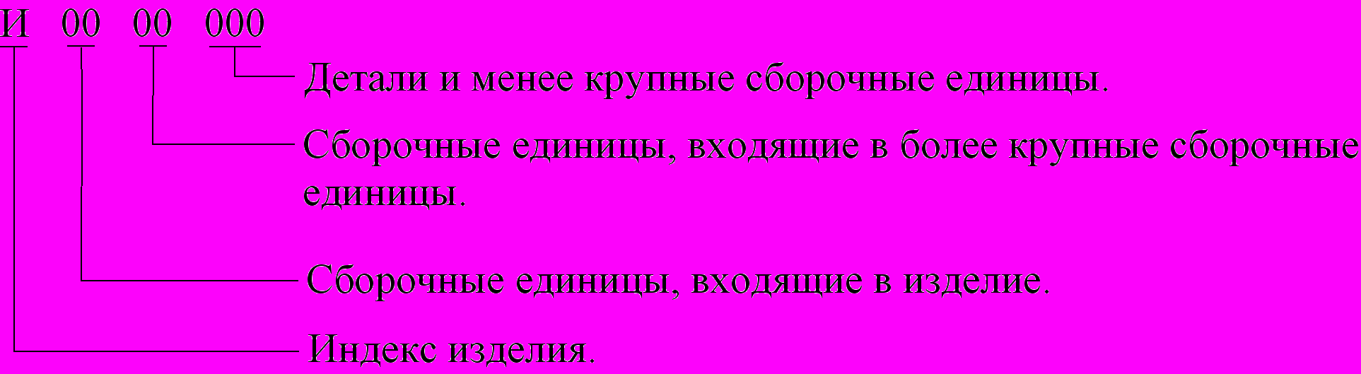 Линии или установке присваивается индекс (из трех букв) в том же порядке, что и изделию. Каждому изделию, входящему в линию, присваивается порядковый номер, проставленный в виде дроби под индексом изделия.