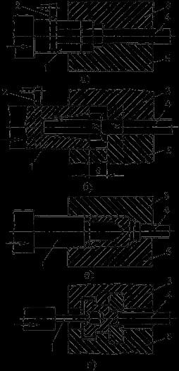 1 – готовый пруток; 2 – матрица; 3 – заготовка; 4 - пуансон
