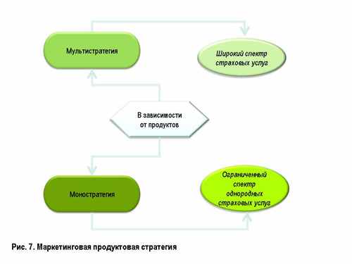 Виды маркетинговой продуктовой стратегии страховой компании показаны на рис. 7.