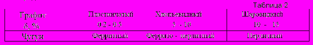 Механические свойства чугуна: сопротивление разрыву, изгибу, кручению, обусловлены количеством и формой графита. Предел прочности при сжатии и твердость чугуна зависят от строения металлической основы. Влияние формы графитовых включений и структуры металлической основы на пластичность, твердость чугуна показано в табл. 2. Наличие структурно свободного графита обеспечивает хорошую обработку со снятием стружки. Антифрикционные свойства чугуна, например, подшипников лучше, чем стали. Необходимые свойства получаются благодаря тому, что средства смазки вымывают